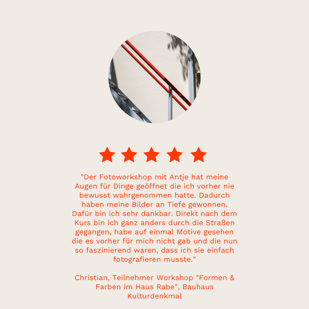 Und wenn du selbst gern zur Kamera greifst, dann sind meine Fotografie Workshops eine schöne Idee für dich!