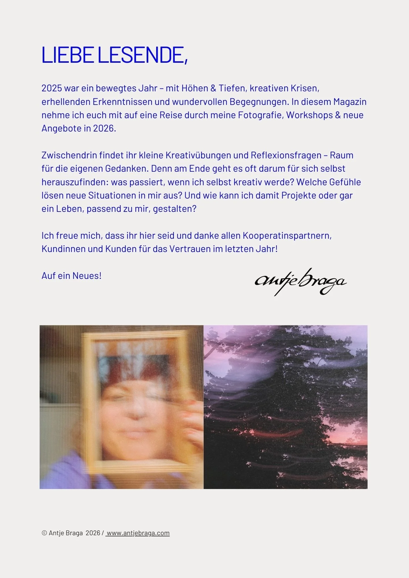 2025 war ein Jahr voller Bewegung – mit Hochs, Tiefs und einer kreativen Krise, die vieles verändert hat. In diesem Magazin nehme ich dich mit auf meine Reise: durch meine Fotografie, Workshops und Gedanken.